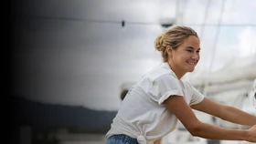 Тэми и Дэб драят яхту. Тэми рассказывает подруге: я на шхуне работала поваром. Откуда ты? Из Сан-Диего, Калифорния.
