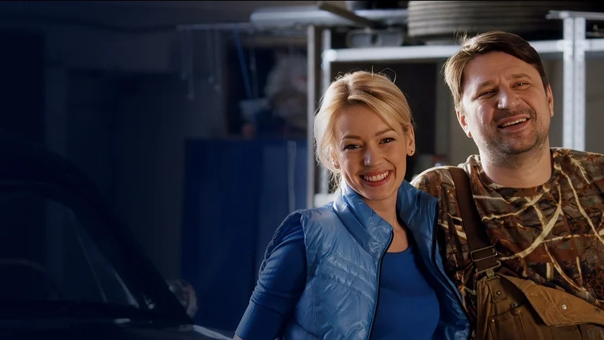 Евгения Лоза, Виктор Логинов и Кирилл Жандаров в лёгкой мелодраме «Любовь на четырёх колёсах», которую можно смотреть онлайн.