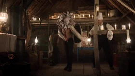 Вечером Эдуар лежал на балконе своего номера после очередной дозы наркотиков. Сначала в номер пришла Луиза, а потом появился Марсель, которому было безразлично, что скрывающийся под маской человек обокрал такое количество людей. Ему важно было знать, каким образом на его эскизе появился автограф сына. Эдуар был в маске, которая полностью закрывала его лицо, но по глазам Марсель понял, что это его сын. Он сказал, что был очень глуп, что не замечал талант сына. Эдуар обнял отца, а потом спрыгнул с балкона.