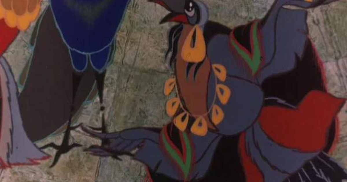 Внезапно высоко над их головами пролетел журавлиный клин. Словно по команде, птицы подняли головы, провожая его взглядами. Тут они вспомнили о том, как сами парили в вышине, и попробовали взлететь, но подаренные побрякушки и съеденные яства тянули их к земле. Тем не менее, они отправились в дорогу, пока не превратились в цыган, душа которых стремится в небо, а потому нигде на земле не находит покоя.