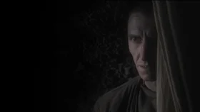 На поле стоит церковь в тумане. Женщина протирает влажной тряпкой спину лежащего на кровати героя. Затем она обтирает его шею и грудь. В комнату входит некто и спрашивает о здоровье больного. На полу извивается черная змея.