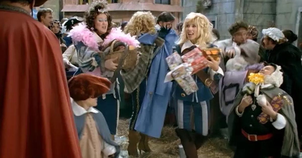 В новогоднем мюзикле «Три мушкетера» авторы продолжают славные традиции «Старых песен о главном» и прочих новогодних огоньков. На этот раз, как не трудно догадаться, за основу взят популярный роман Александра Дюма. В главных ролях, как водится, задействован весь свет отечественного телевидения и эстрады, начиная от Юрия Стоянова и заканчивая Аленой Свиридовой. Повествование быстро переходит от слов к делу, и уже через пять минут после вступительных титров юный Д'Артаньян отправляется в Париж на поиски своего счастья. Попутно мы узнаем, что королевский полк мушкетеров полностью состоит из женщин, которые обладают уникальным умением делать маникюр во время фехтования. А злобный кардинал Ришелье превратился в грудастую мадам в исполнении Андрея Данилко. Далее сюжет движется в привычном направлении алмазных подвесок, в то время как все вокруг непрерывно танцуют и поют в жанре российской поп-сцены. Если вам нравятся выступления Петросяна, Киркорова и Юлии Началовой, то не упустите шанс посмотреть онлайн этот музыкальный капустник в нашем интернет-кинотеатре.