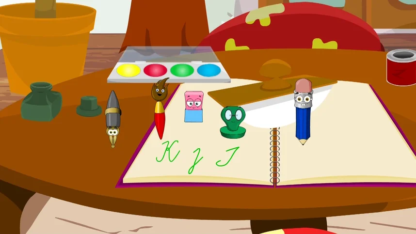 Познавательный мультсериал, знакомящий детей с буквами английского алфавита. Карандаш, Ластик, Ручка, Кисточка и Штамп живут на письменном столе и показывают ребятам различные стили написания букв.