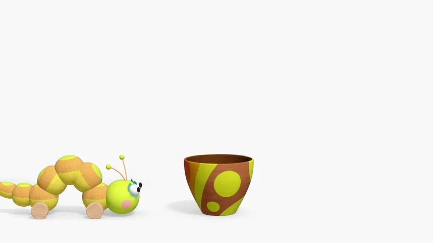 Гуляя по лесу, деревяшки находят гусеницу, которая куда-то спешит. Мяу думает, что гусеница спешит к цветочку, Иго-го думает, что к кусту. Ду-ду догадывается и помогает гусенице забраться на дерево. Гусеница сплетает куколку на ветке дерева. Куколка раскрывается, и оттуда появляется Бабочка!