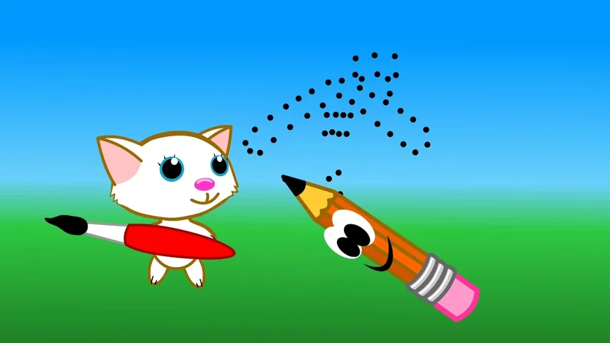 Маленькая кошечка Дотти учится рисовать. Ей помогает оживший карандаш, расставляющий точки на бумаге. Соединяя их, пушистая художница получает красивую картинку и подбирает нужные краски.