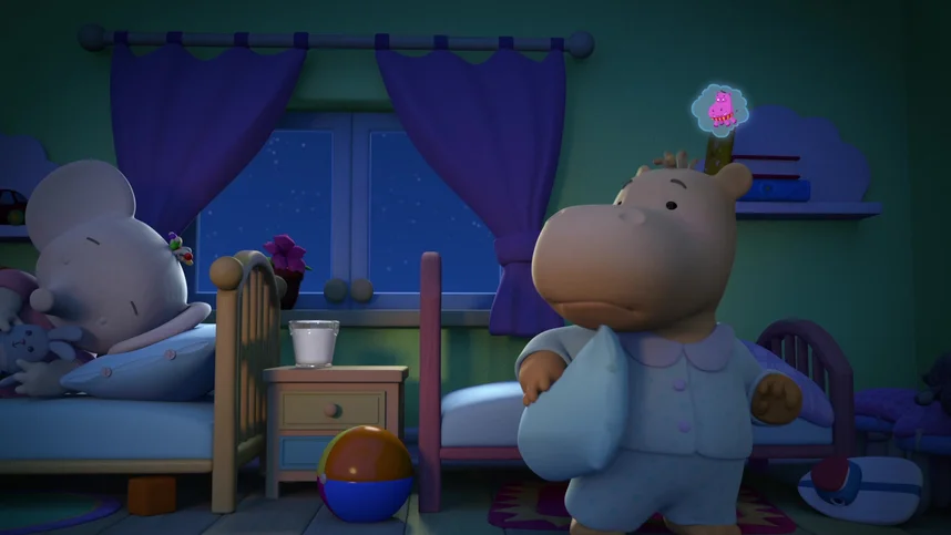 Тома начинает считать и в комнате появляются веселые слоники в облачках. Они летают по комнате, но только мешают Тиме. Тогда парень решает, что ему нужно считать бегемотов. Вот только у него ничего не получается из-за проказников-слоников. Тома к этому времени уже крепко спит. Наконец, бегемотик не выдерживает и уходить спать в другую комнату.